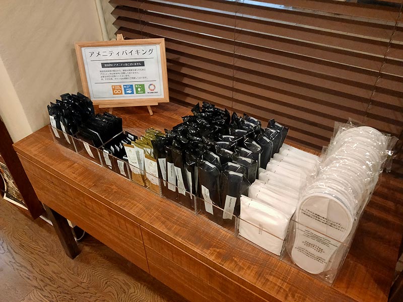 地球環境保護の観点から、無駄な廃棄を減らすためにアメニティ類は客室内に設置しておりません。